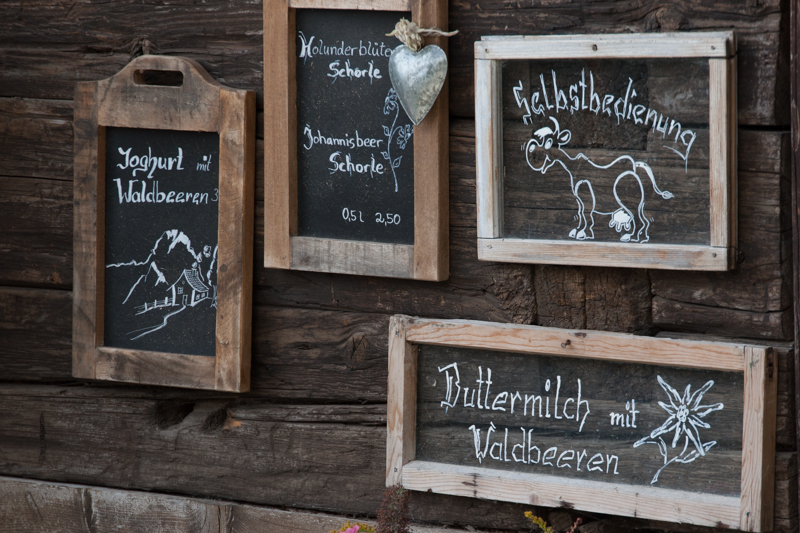 Die bewirteten Almen, die man auf den Wanderungen findet, laden zum Rasten ein. Was gibt es Schöneres, als auf der Stutzalpe in der Sonne zu sitzen und sich mit "Radler und deftiger Brotzeit" die Akkus wieder aufzuladen. |